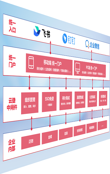 对协作平台提供支持服务,,支持企业应用与协作平台对接,,,包含组织同步、、消息集成、、、待办集成等。。。支持目前主流的协作平台:钉钉、、、、企微和飞书。。。